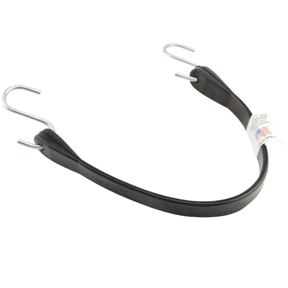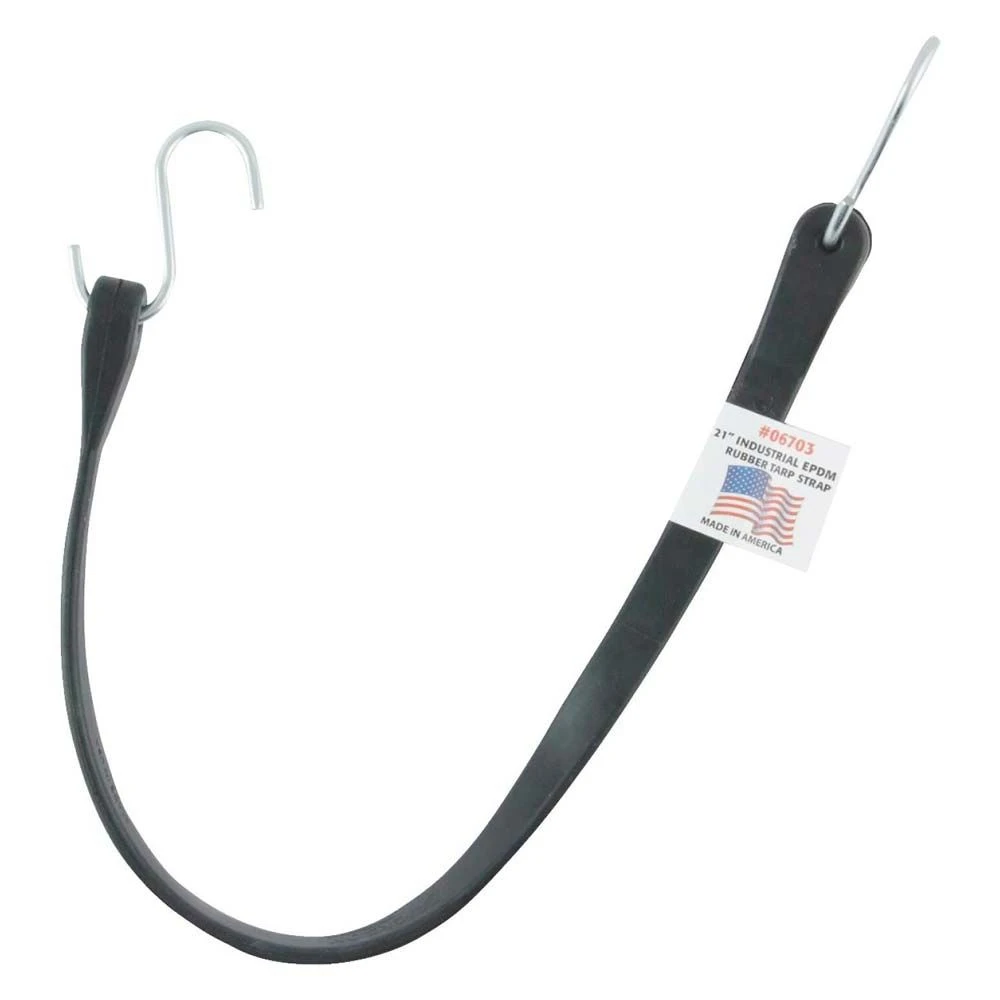 Erickson Industrial EPDM Rubber Tarp Strap is great for helping strap down large or fragile items. It is used by professional haulers and weekend warriors alike. Quick On and Off hooks eliminate rope tying. Reinforced ends prevent hooks from pulling out. Convenient sizes for a variety of jobs. 13 in. Hook to Hook (10 in. rubber to rubber) 18 in. Hook to Hook (15 in. rubber to rubber) 24 in. Hook to Hook (21 in. rubber to rubber) 34 in. Hook to Hook (31 in. rubber to rubber) 44 in. Hook to Hook (41 in. rubber to rubber)